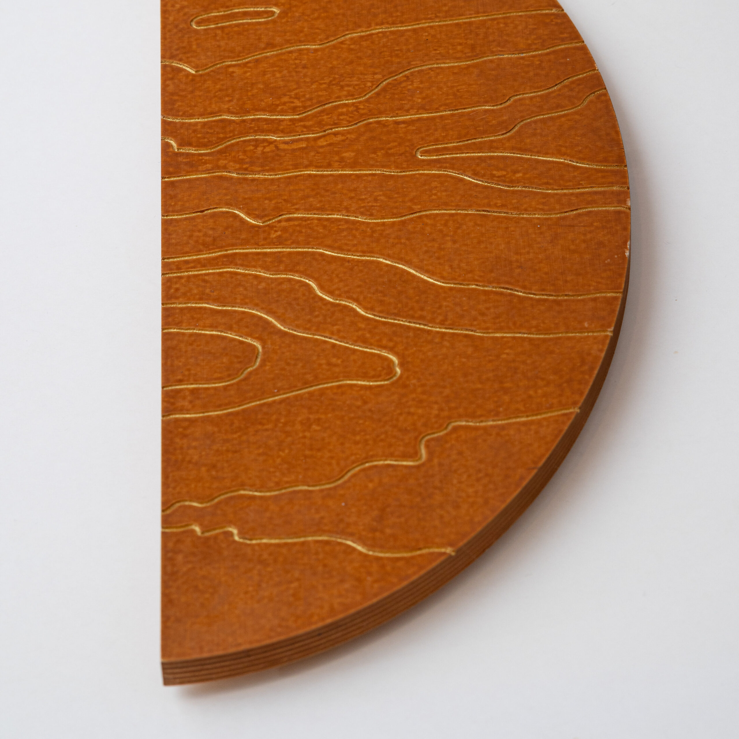 Kukeseene kuldse kübara märkamine sambla sees, metsa peidetud aarde leidmise rõõm – eriline hetk. Kantarelli kumab soojas ning kuldkollases varjundis, mõjub orgaaniliselt ja päikeseliselt. Puiduõli jätab kasevineeri loomuliku süü nähtavaks, luues tekstuurse ja elava pinna. Graveeritud kuldsed jooned voolavad üle puidu pinna nagu valguskiired, harmoneerudes puidu loomuliku soojusega. Kantarelli toob hilissuve kutsuva soojuse ja “metsakulla” otse sinu koju.