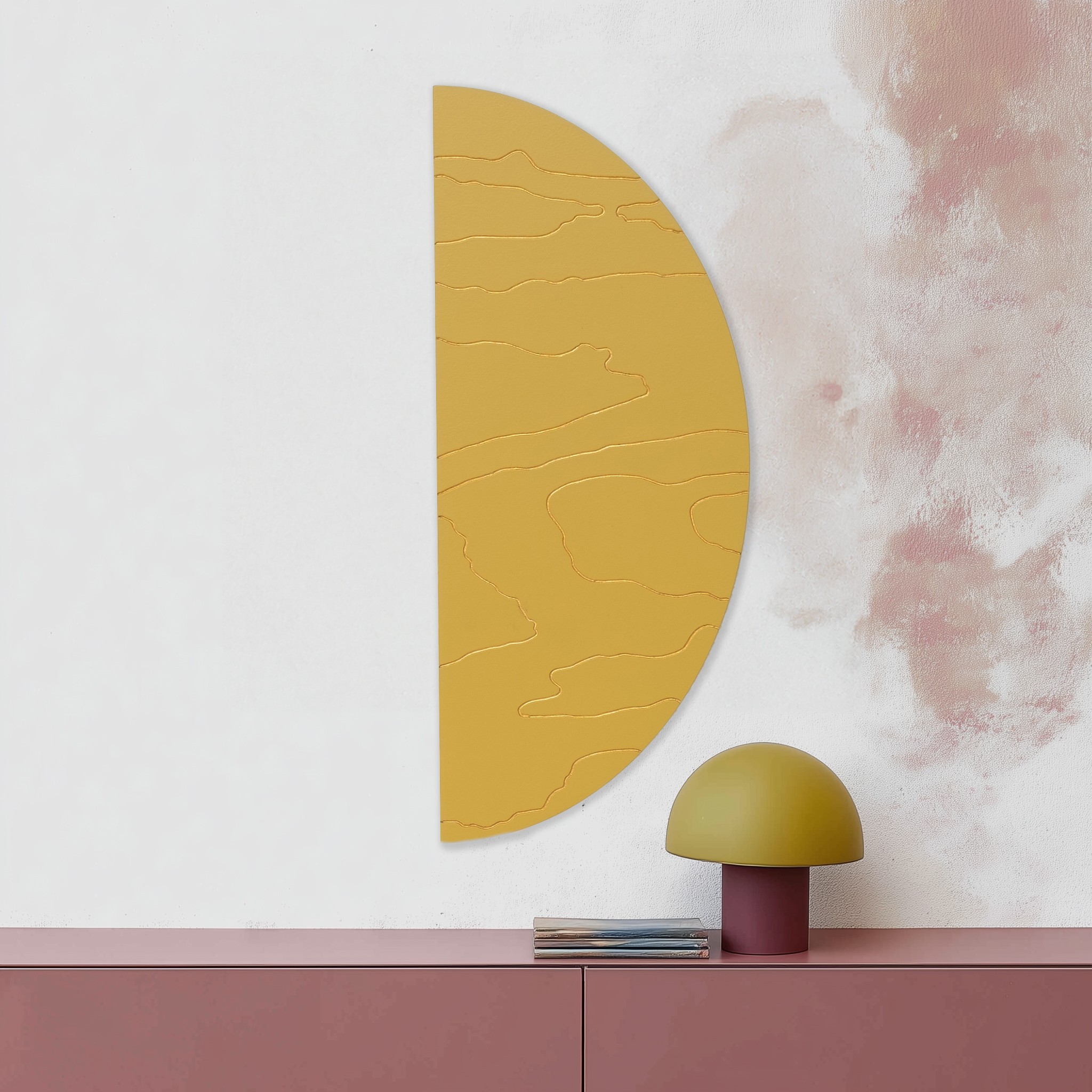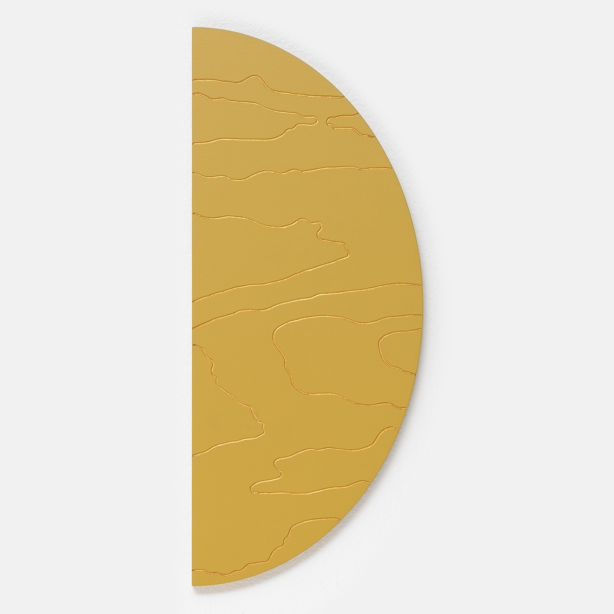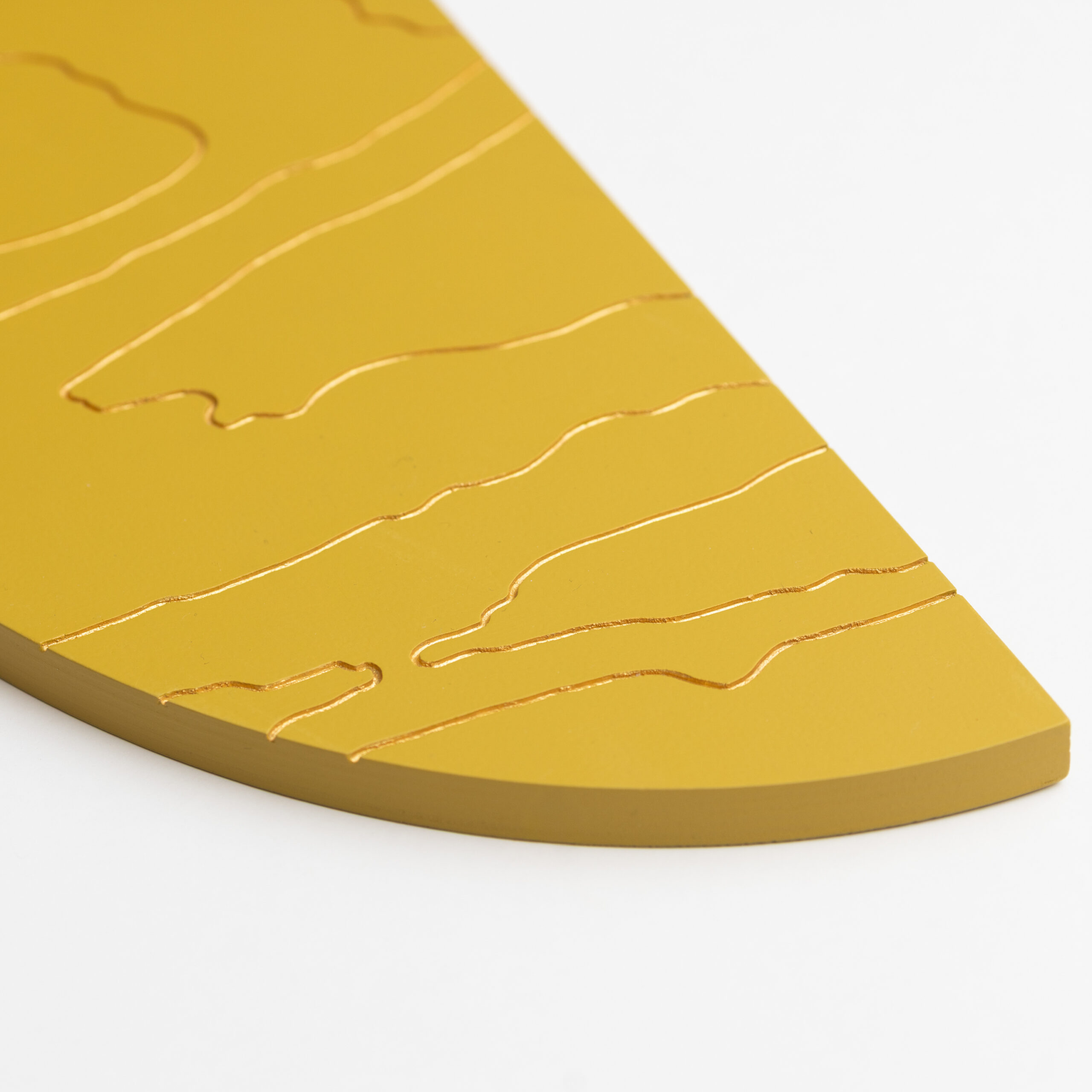 Mahe sinepikollane teos, mida läbib justkui kuldne valgus. Särav meeldetuletus rõõmust ja alati olemasolevast sisemisest valgusest. Kuldsed jooned voogavad üle puidu nagu valguse jõgi, ning just nagu jõed süvendavad maad, on need jooned graveeritud vineeri sisse. Las selle särav ilu meenutab piiritut rõõmu, mis elab Sinu sees ja ümber.